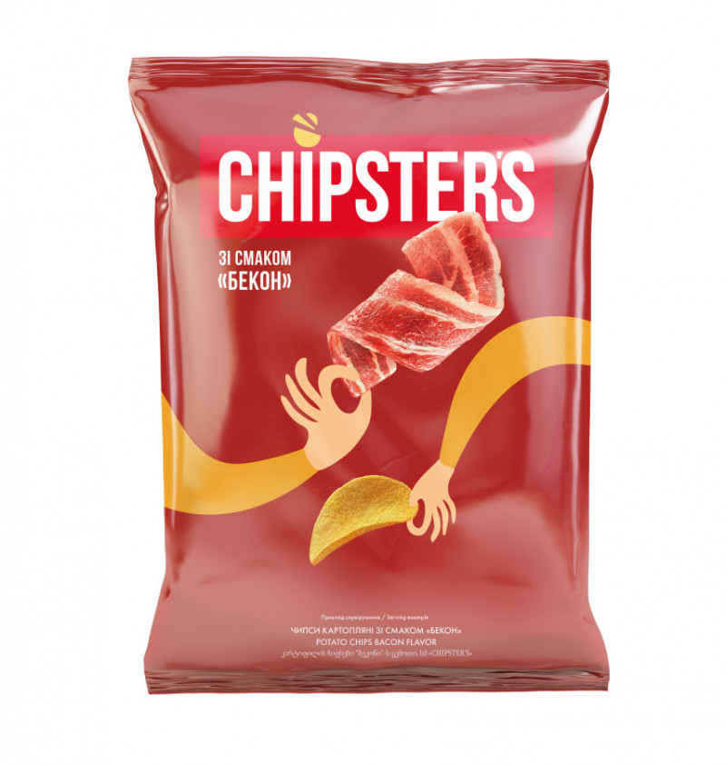 Чипси 100г "Chipster's" зі смаком Бекон + у подарунок Сухарики пшеничньо-житні 60г "Flint"