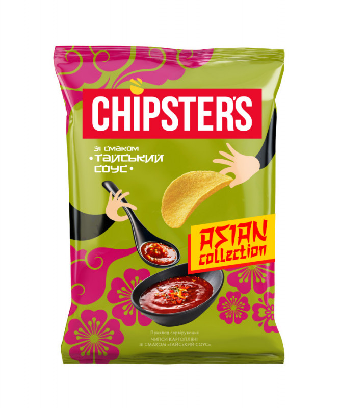 Чипси 100г "Chipster's" зі смаком Тайський соус + у подарунок Сухарики пшеничньо-житні 60г "Flint"