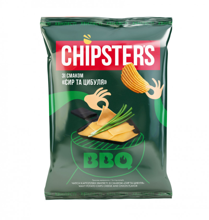 Чипси 110г "Chipster's" зі смаком сиру та цибуля + у подарунок Сухарики пшенично-житні 60г "Flint"
