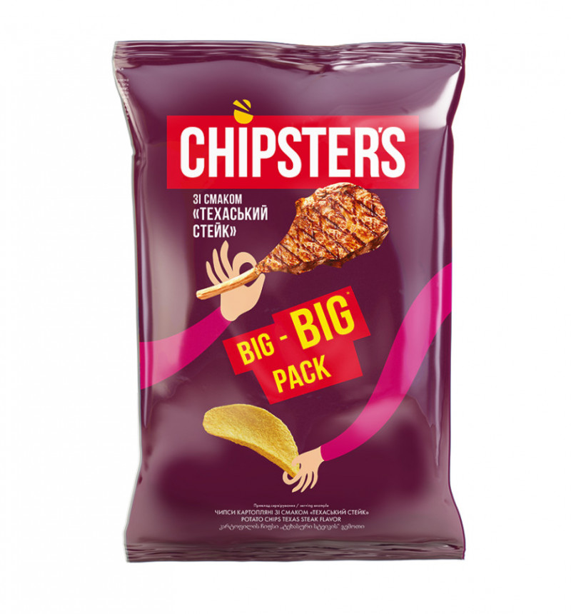 Чипси 150г "Chipster's" зі смаком Техаський стейк +у подарунок Сухарики пшен.-житні 60г "Flint"