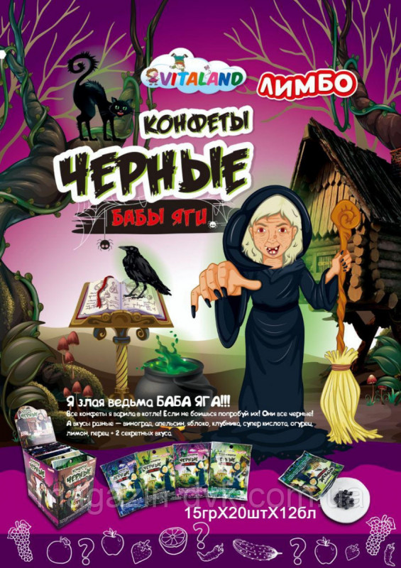 Чорні цукерки Злої Відьми 10/12смаків жув.цук. (аналог Баби Яги) 15г*20шт