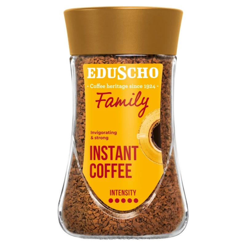 Щоденна класика для всієї родини. EDUSCHO Family — це розчинна кава з м’яким, гармонійним смаком і легкими нотками гірчинки. Виготовлена з ретельно відібраних зерен арабіки та робусти, що проходять делікатне обсмаження. Ідеально підходить для ранкового ритуалу або перерви впродовж дня.