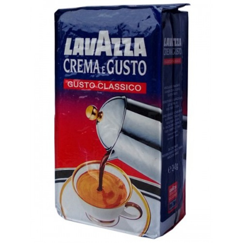 Мелена кава Lavazza Crema e Gusto - це вишукане поєднання відбірних сортів Бразильської арабіки 30% і Індійської робусты 70%% темного обжарювання. Кава має міцний насичений смак, з приємним шоколадно-горіховим післясмаком, чудовий кавовий аромат і густу кремову пінку. Середньо-тонкий помел зерен дозволяє заварювати каву прямо в чашці. Упаковка: 250г х 20шт .