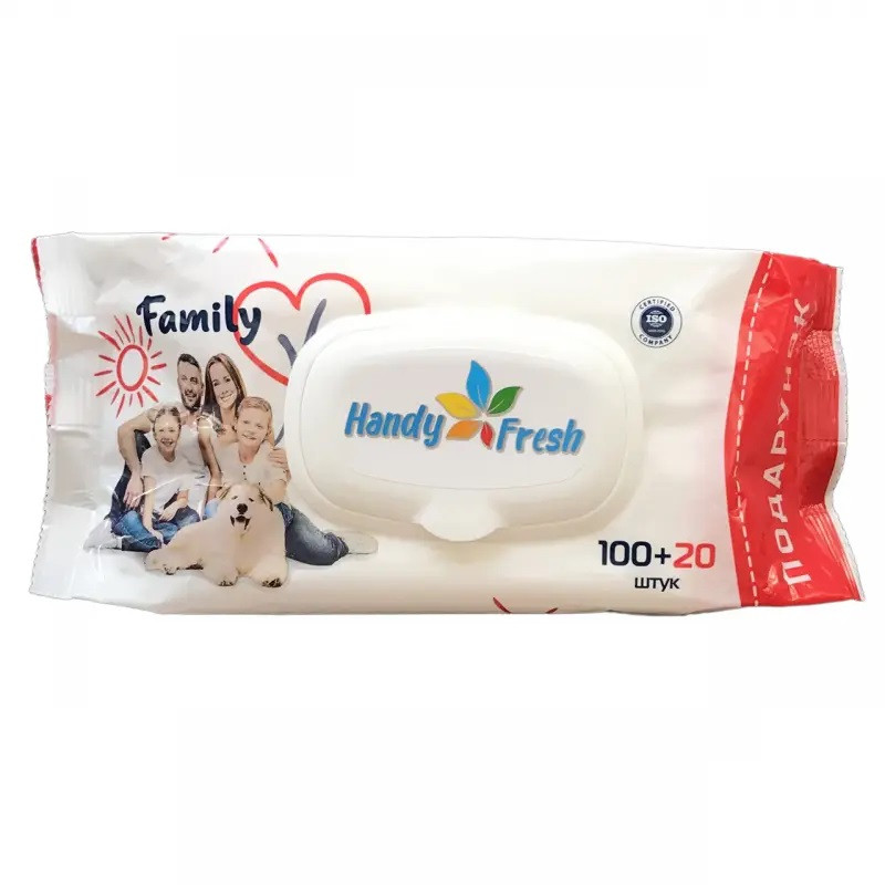 Вологі серветки "Handy Fresh Baby" з клапаном - це зручний і практичний засіб для догляду за немовлятами та маленькими дітьми. Упаковка включає 100 основних штук і 20 додаткових серветок з клапаном для утримання вологості в упаковці.